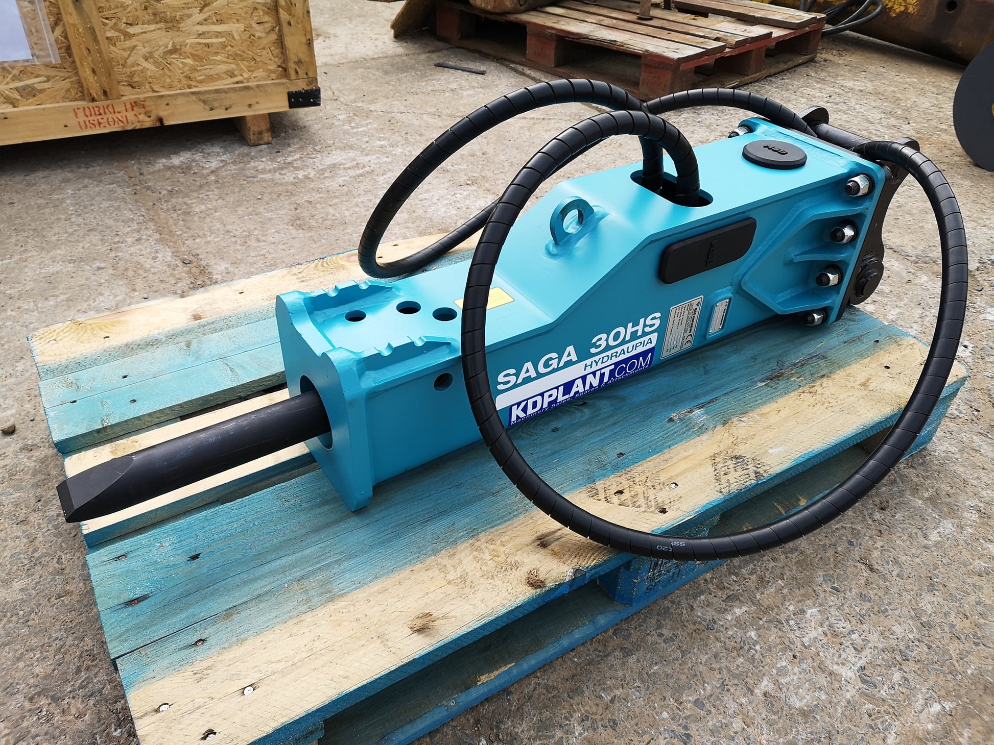 Brand new SAGA 30HS gas fired rock breaker by MSB for 1.2-3.5 ton hydraulic excavators. Comes with custom head bracket to suit your machine, spare chisel, and gas recharge / maintenance kit.